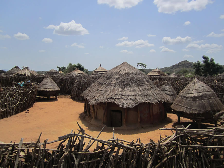 A Karamojong village is also known as “Manyatta” or “Ere” meaning an enclosed residential area, surrounded by sharp thorns and with small entry points for people and a larger entry point for cattle. One Manyatta has multiple families and a communal space for cattle. The Karamojong reside in the largely permanent Manyattas during the wet /rainy season. As soon as the weather conditions are suitable for agriculture and livestock herding. Men stay mainly in the Kraal during dry season as they migrate closer to water sources, woman and children remain in the Manyattas to prepare of Agriculture production and others look for income generating activities ‘Elejilej’.