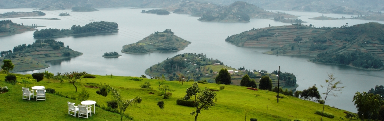 Lake Bunyonyi is in south-western Uganda between Kisoro and Kabale, and it is close to the border with Rwanda. The lake appears on the 5,000 Ugandan shilling note under the title "Lake Bunyonyi and terraces". Towns on its shores include Kyevu and Muko, while its 29 islands include Punishment Island and Bushara Island.