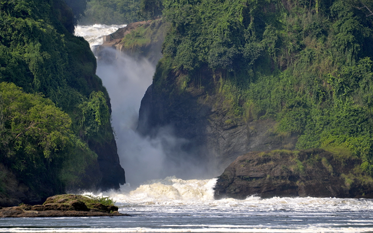 Murchison Falls National Park lies at the northern end of the Albertine Rift Valley, where the sweeping Bunyoro escarpment tumbles into vast, palm-dotted savanna. First gazetted as a game reserve in 1926, it is Uganda's largest and oldest conservation area, hosting 76 species of mammals and 451 birds. The park is bisected by the Victoria Nile, which plunges 45m over the remnant rift valley wall, creating the dramatic Murchison Falls, the centerpiece of the park and the final event in an 80km stretch of rapids. The mighty cascade drains the last of the river's energy, transforming it into a broad, placid stream that flows quietly across the rift valley floor into Lake Albert. This stretch of river provides one of Uganda's most remarkable wildlife spectacles. Regular visitors to the riverbanks include elephants, giraffes and buffaloes; while hippos, Nile crocodiles and aquatic birds are permanent residents.